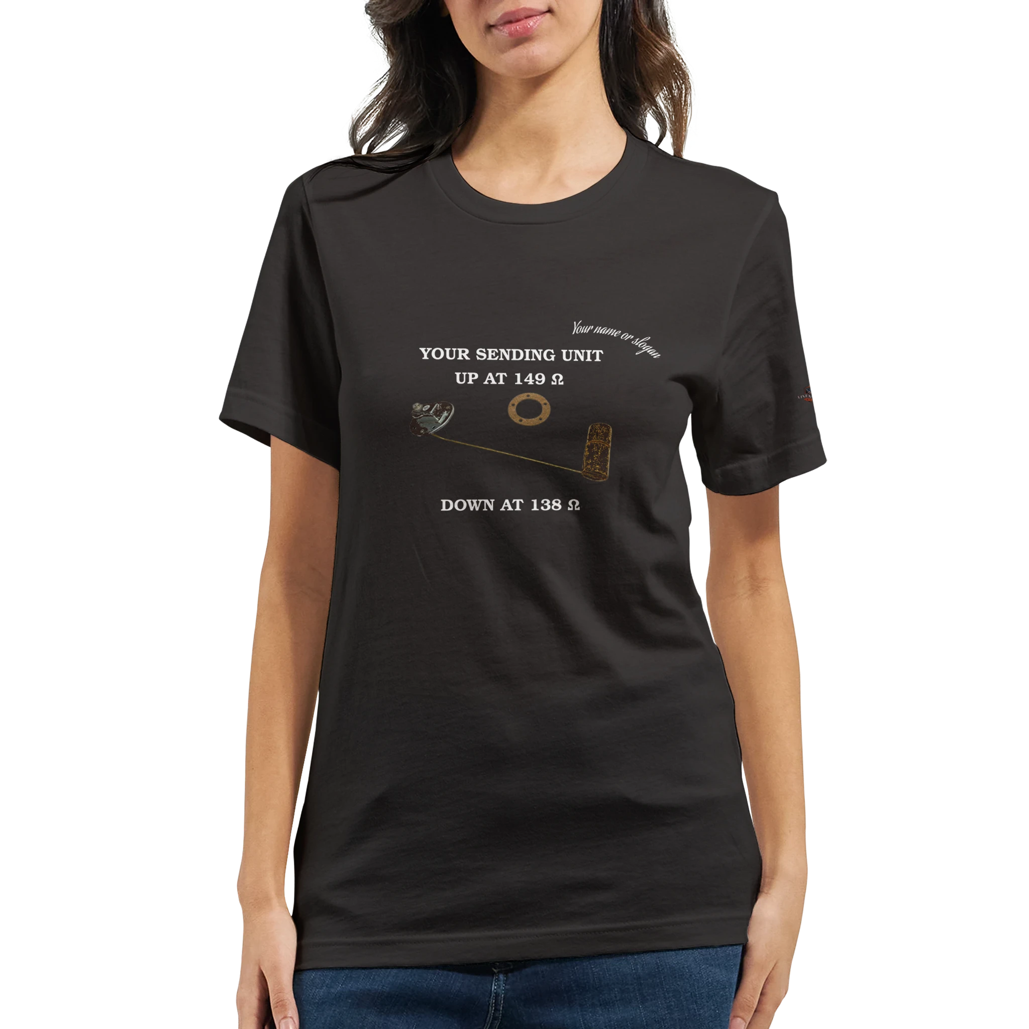 Celebrate the Unsung Hero of Classic Cars - The Still Sending Signals – Classic Fuel Sending Unit Tee pays homage to a vital yet often overlooked component of vintage automobiles: the fuel sending unit. This unisex T-shirt features a detailed illustration of this essential part, complete with resistance values, capturing the intricate beauty of automotive engineering.