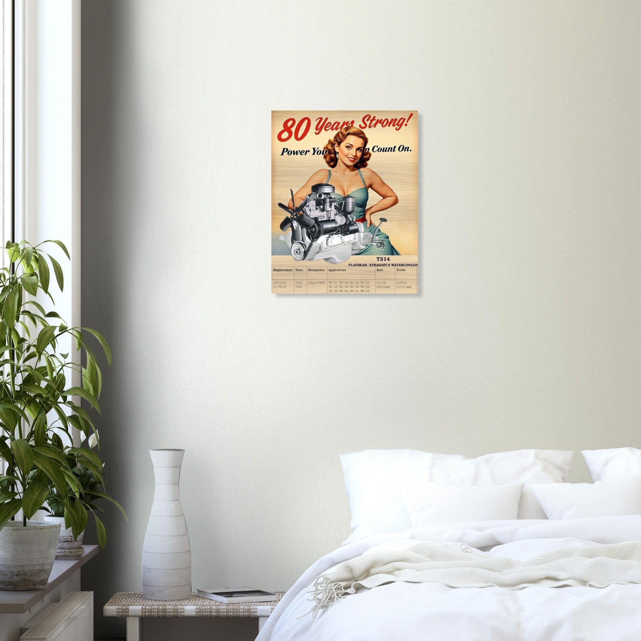 Beautiful brushed silver aluminum wall art featuring the famous Flathead Straight-6 engine type T214. It wasn't called 'Dependability on all Battlefronts' for no reason. This wall art has a textured industrial look with an artistic effect. The edges reveal a metallic silver effect.