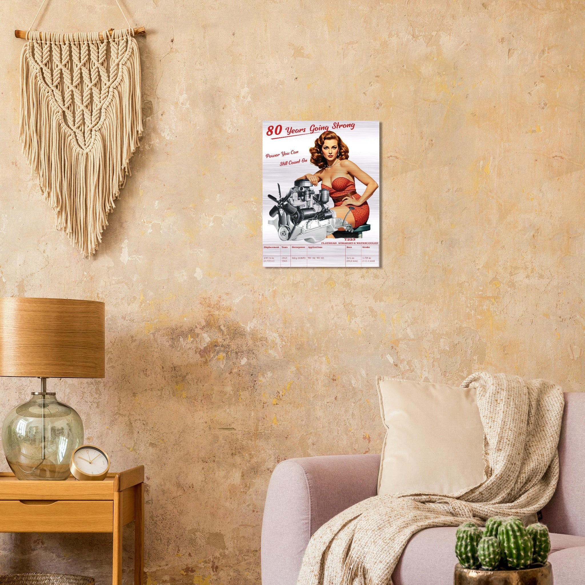 Beautiful brushed silver aluminum print featuring the famous Flathead Straight-6 engine type T223. It wasn't called 'Dependability on all Battlefronts' for no reason. This wall art has a textured industrial look with an artistic effect. The edges reveal a metallic silver effect.